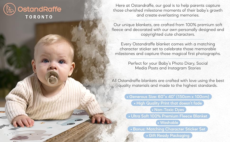 Track their development with this Large Size 60” x 40” Soft Fleece Blanket with matching 16 Character Sticker Set.