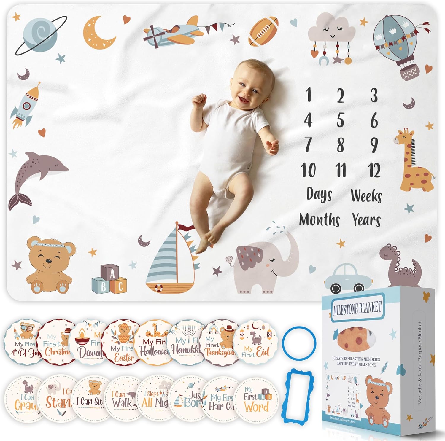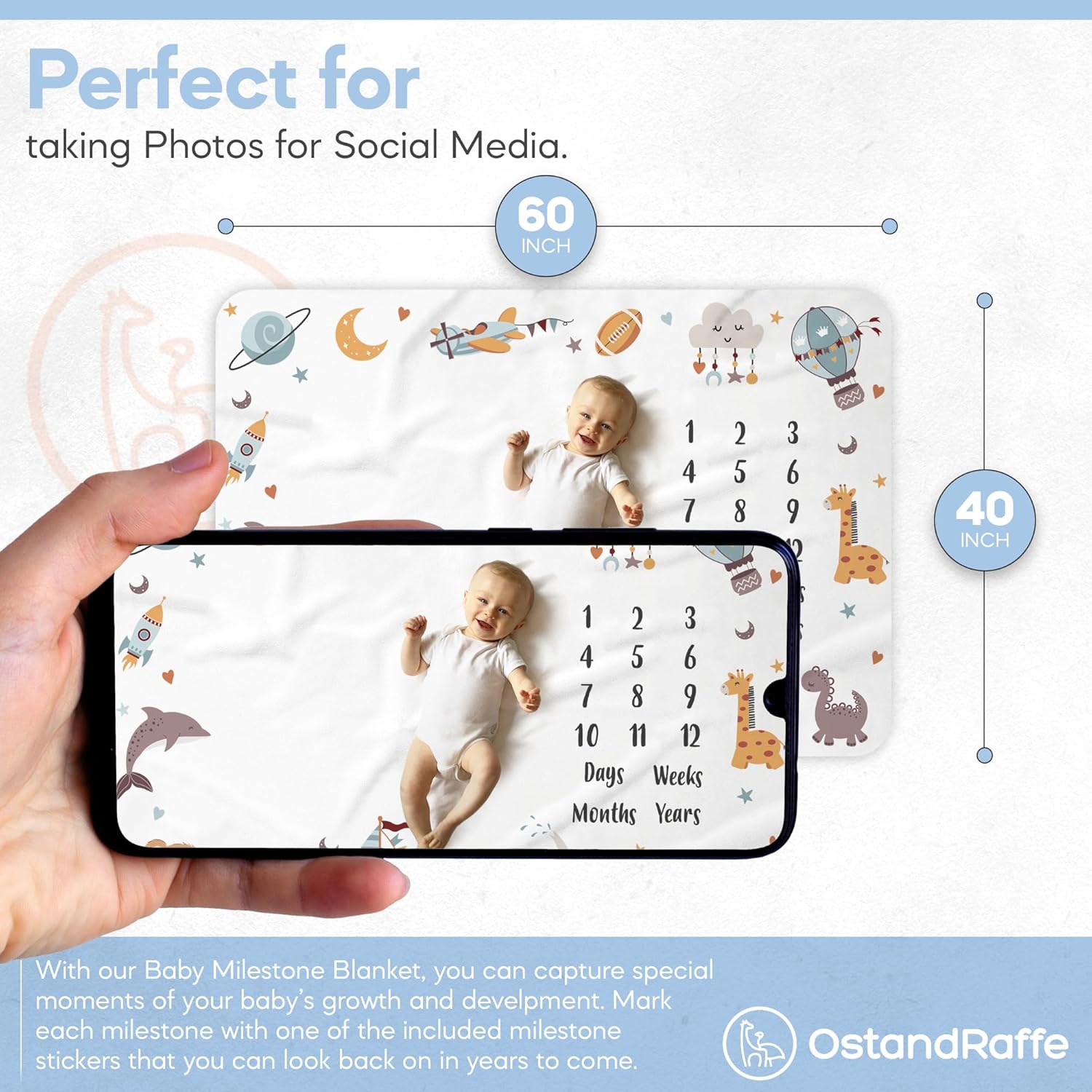Track your baby’s development with our baby milestone blanket. Our super soft, machine washable and durable baby blanket is perfect for capturing those precious moments of your little one’s growth.